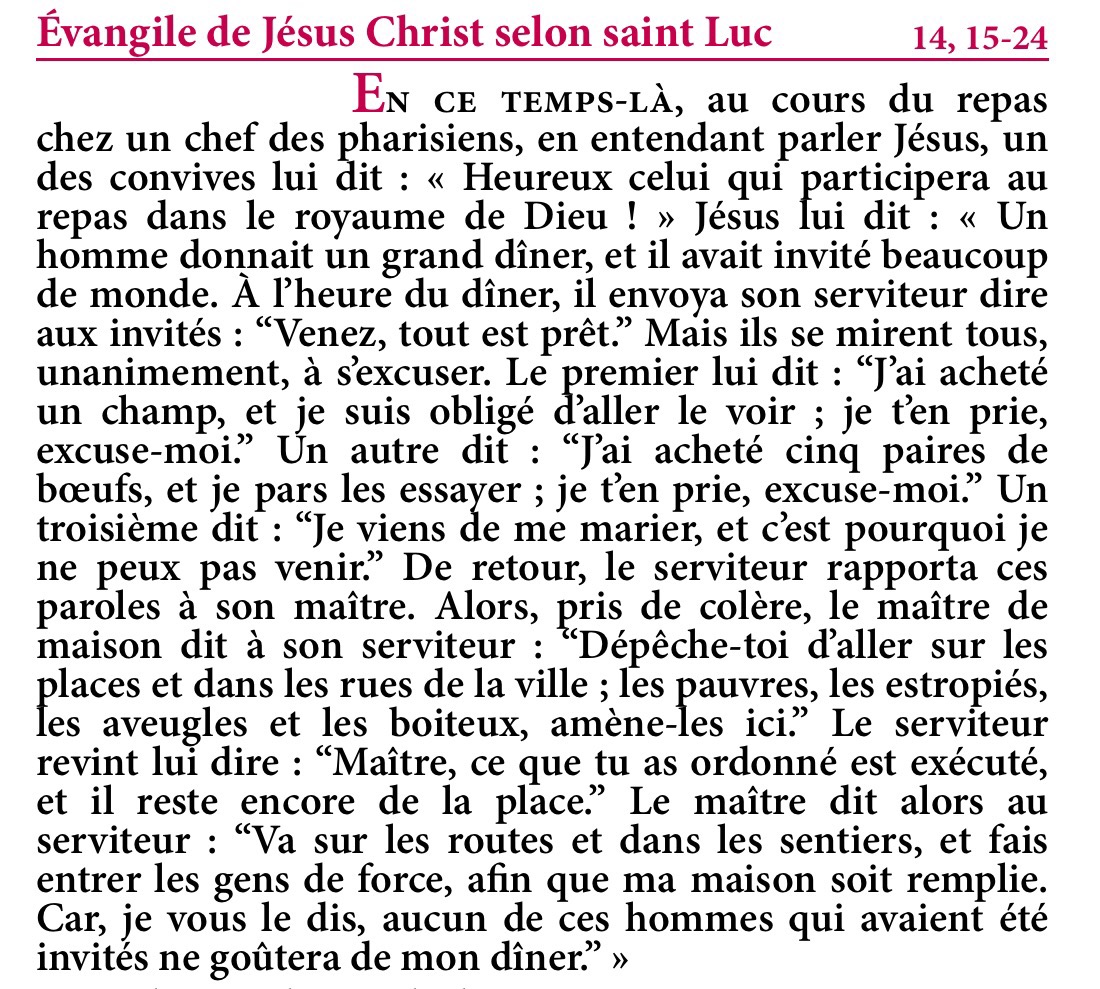 Évangile de Jésus-Christ selon saint Luc 14,15-24.
