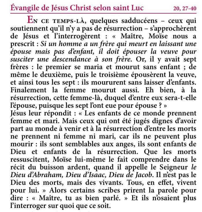 Évangile de Jésus-Christ selon saint Luc 20,27-40.