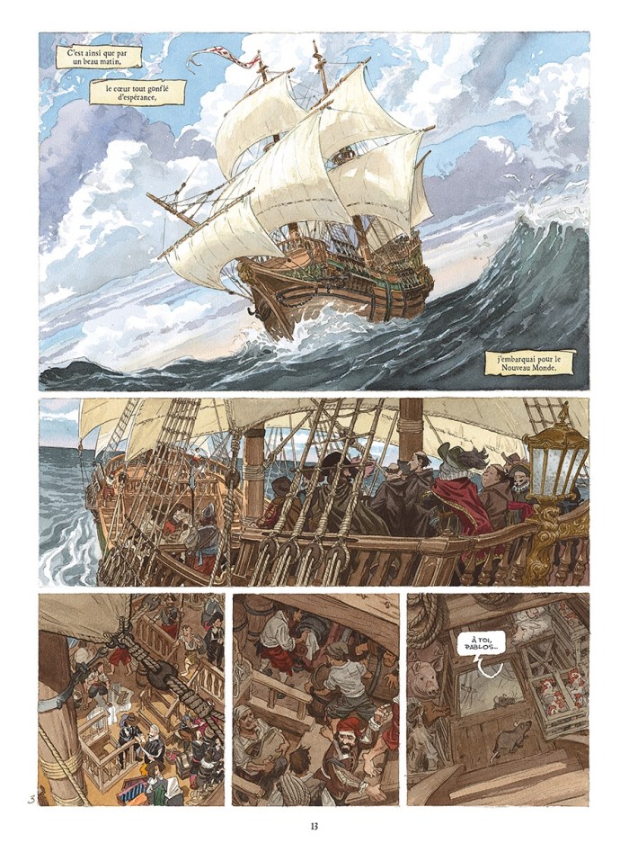 Les images de Juanjo Guarnido servent le texte d’Alain Ayroles, et réciproquement, en une osmose parfaite dans une aventure fleuve où le récit s’étire pour mieux vous piéger par les surprises qu’il vous réserve. Il ne vous reste plus qu’à vous laisser embarquer dans ce récit picaresque en cette époque où les Amériques des Conquistadors rêvent encore d’or et de carte au trésor…