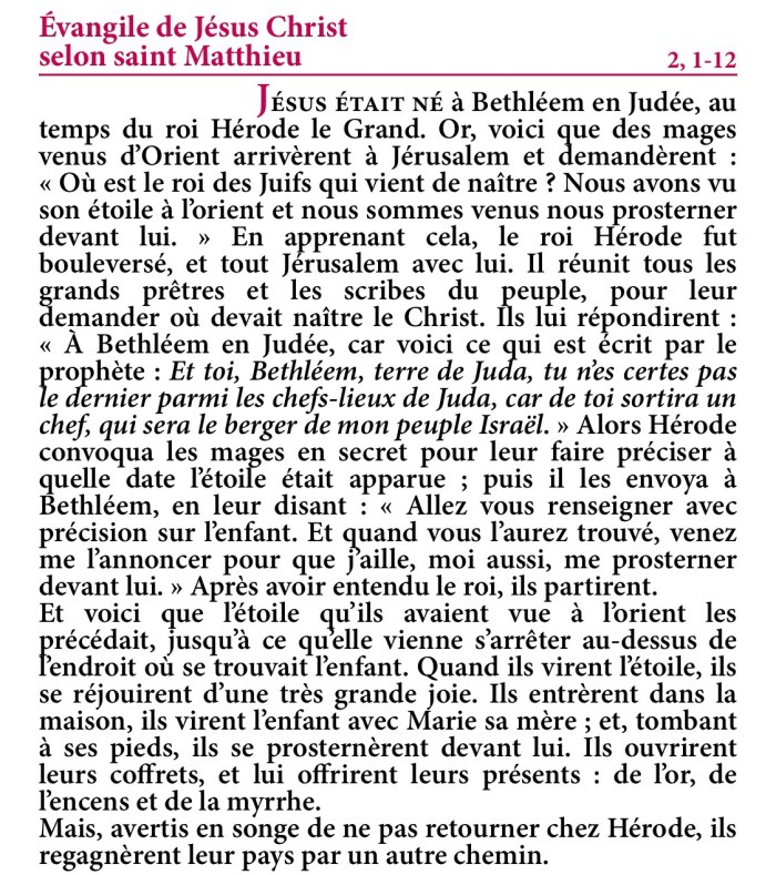 Evangile de l’Epiphanie – Extrait de la Traduction Liturgique de la Bible – © AELF, Paris