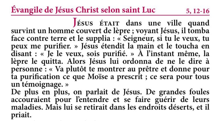 Évangile de Jésus-Christ selon saint Luc 5,12-16.
