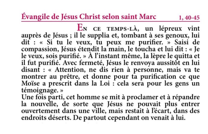 Évangile de Jésus-Christ selon saint Marc 1,40-45.