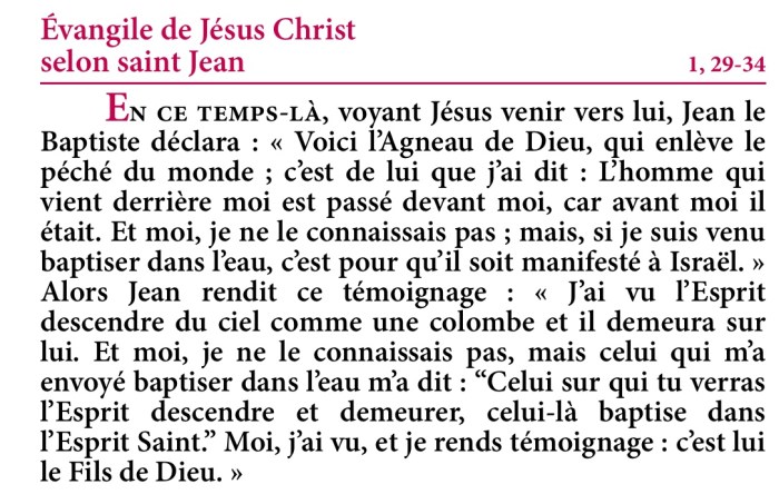 Évangile de Jésus-Christ selon saint Jean 1,29-34.