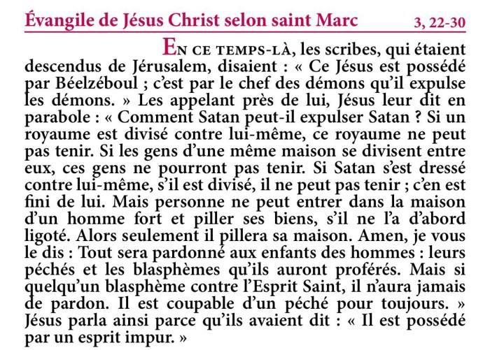 Évangile de Jésus-Christ selon saint Marc 3, 22-30.