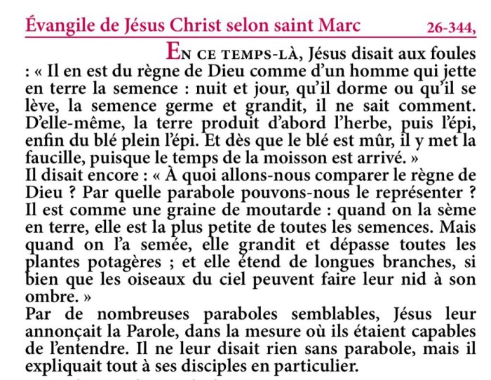 Évangile de Jésus-Christ selon saint Marc 4,26-34.