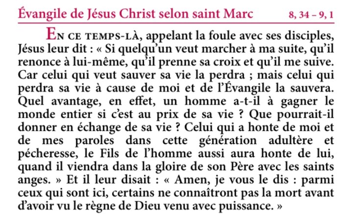 Évangile de Jésus-Christ selon saint Marc 8,34-38.9,1.