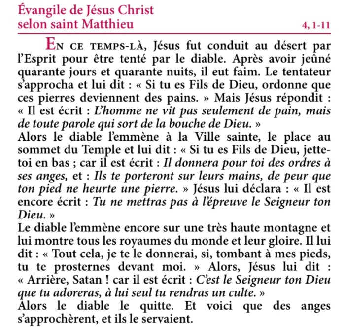 Evangile du 1er Dimanche de Carême – Année A – Extrait de la Traduction Liturgique de la Bible – © AELF, Paris