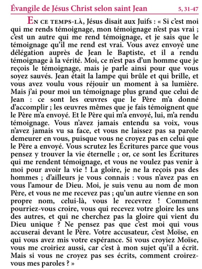 Évangile de Jésus-Christ selon saint Jean 5,31-47.
