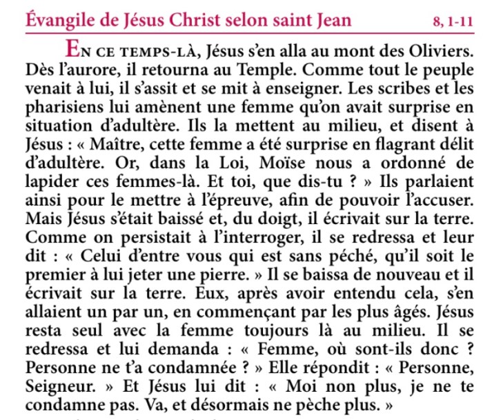 Évangile de Jésus-Christ selon saint Jean 8,1-11.