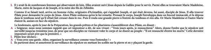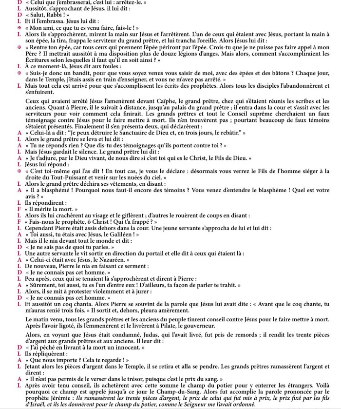 Evangile du Dimanche des Rameaux et de la Passion – Année A – Extrait de la Traduction Liturgique de la Bible – © AELF, Paris