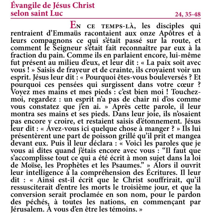 Évangile de Jésus-Christ selon saint Luc 24,35-48.