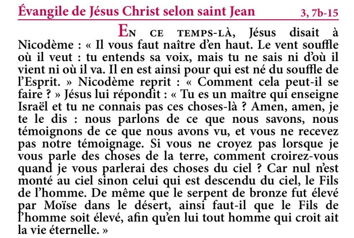 Évangile de Jésus-Christ selon saint Jean 3,7b-15.