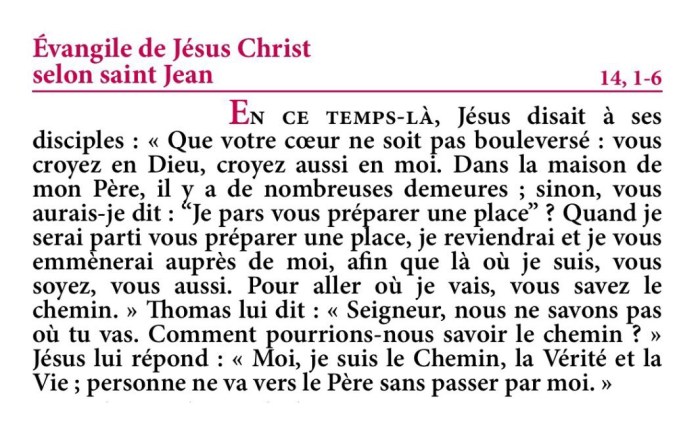 Évangile de Jésus-Christ selon saint Jean 14,1-6.