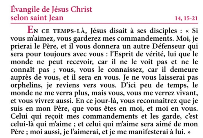 Évangile de Jésus-Christ selon saint Jean 14,15-21.