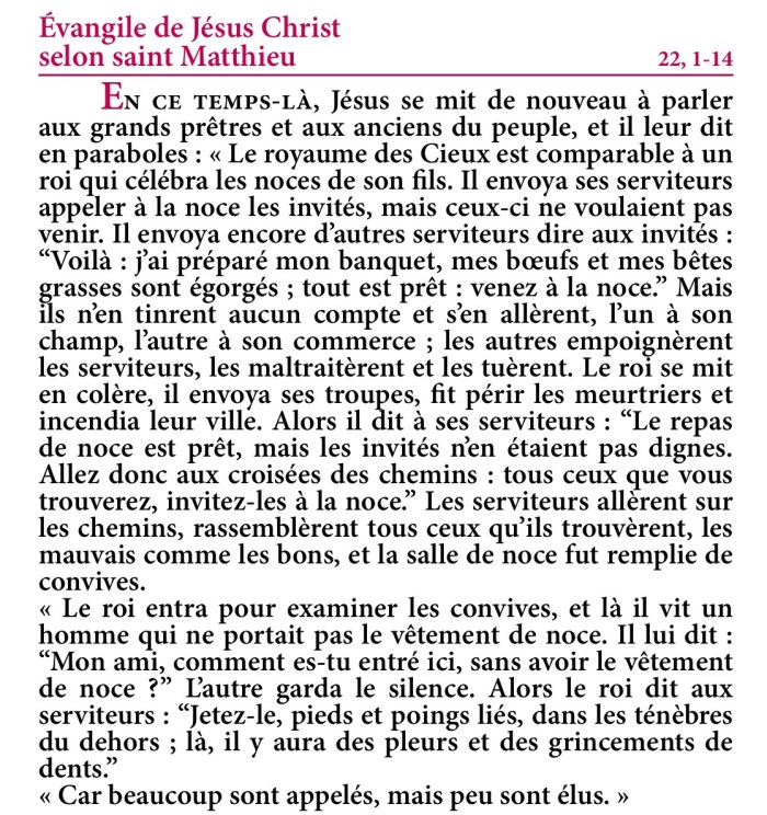 Évangile de Jésus-Christ selon saint Matthieu 22,1-14.