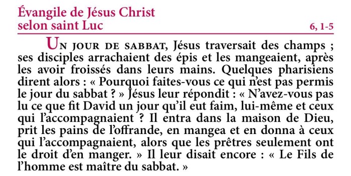 Évangile de Jésus-Christ selon saint Luc 6,1-5.