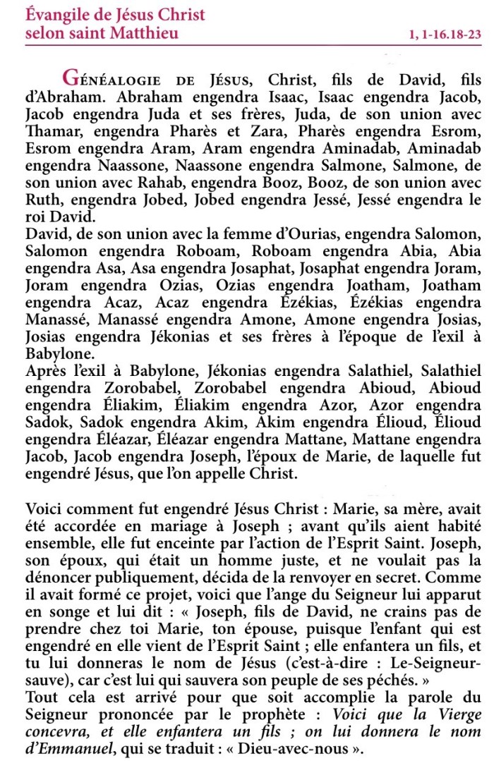 Évangile de Jésus-Christ selon saint Matthieu 1,1-16.18-23.