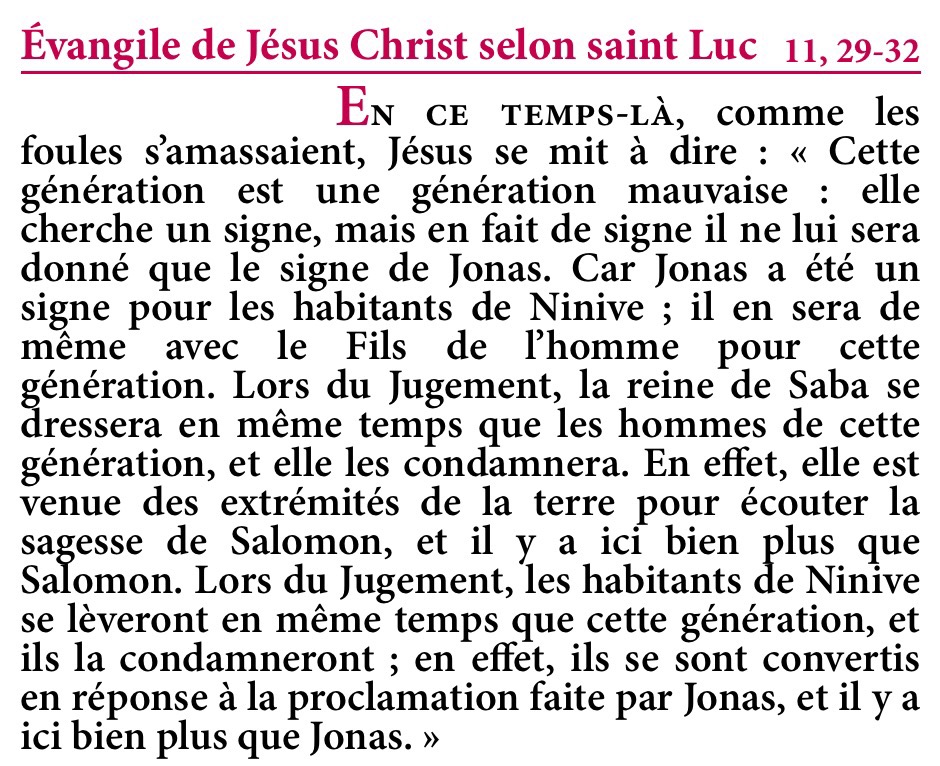 Évangile de Jésus-Christ selon saint Luc 11,29-32.