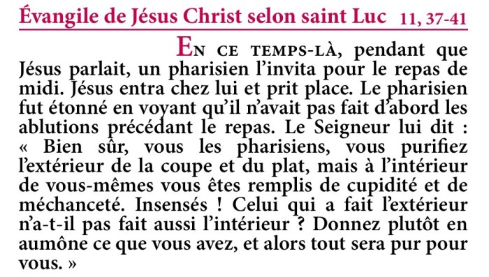 Évangile de Jésus-Christ selon saint Luc 11,37-41.