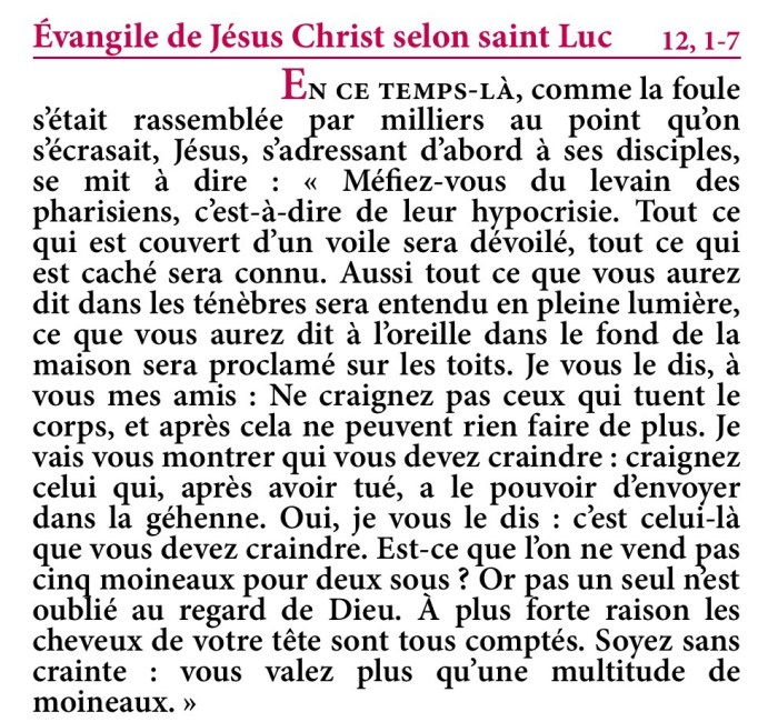 Évangile de Jésus-Christ selon saint Luc 12,1-7.