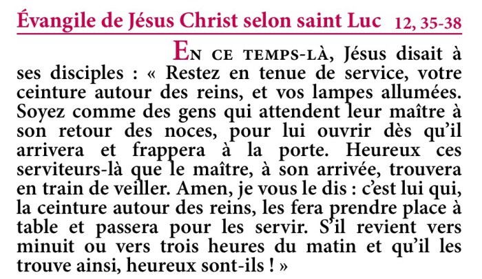 Évangile de Jésus-Christ selon saint Luc 12,35-38.
