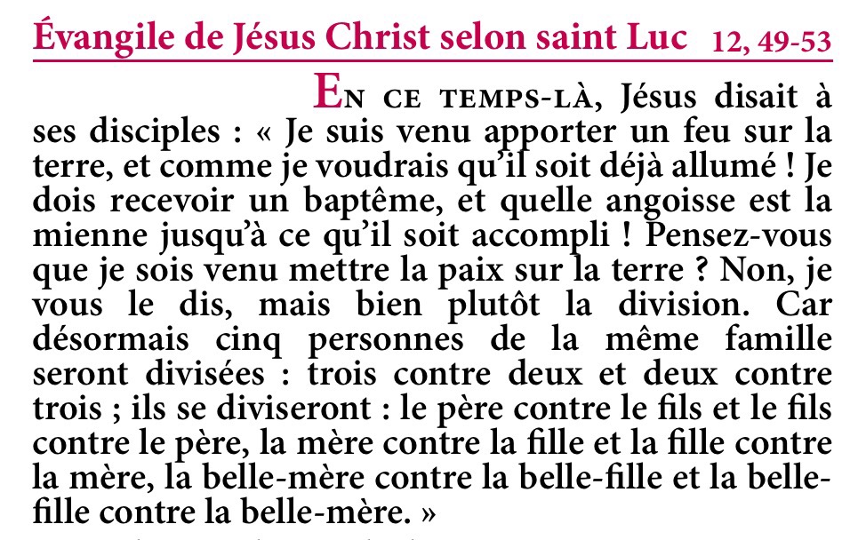 Évangile de Jésus-Christ selon saint Luc 12,49-53.