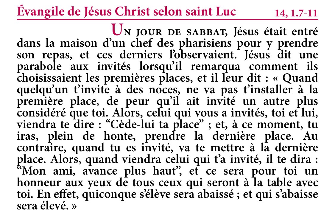 Évangile de Jésus-Christ selon saint Luc 14,1.7-11.
