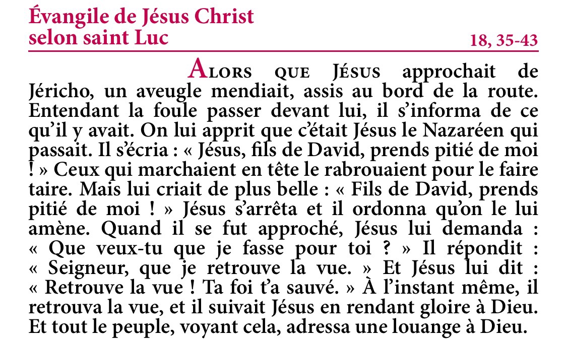 Évangile de Jésus-Christ selon saint Luc 18,35-43.