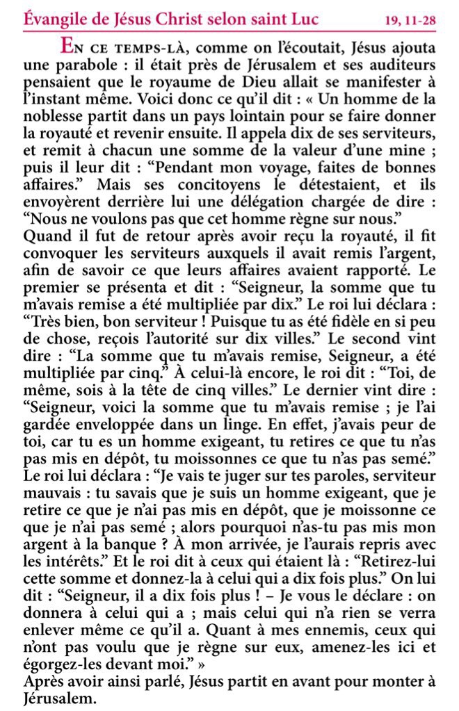 Évangile de Jésus-Christ selon saint Luc 19,11-28.