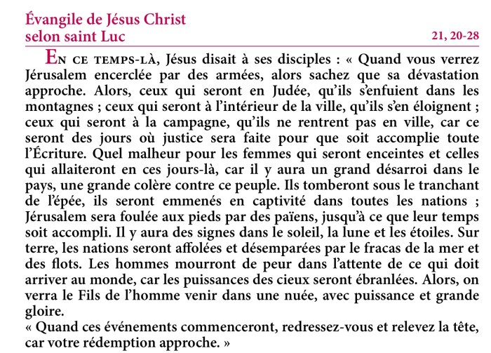 Évangile de Jésus-Christ selon saint Luc 21,20-28.