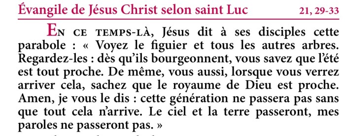 Évangile de Jésus-Christ selon saint Luc 21, 29-33.