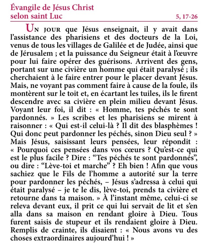 Évangile de Jésus-Christ selon saint Luc 5,17-26.