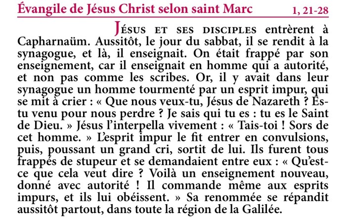 Évangile de Jésus-Christ selon saint Marc 1,21-28.