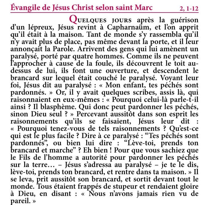 Évangile de Jésus-Christ selon saint Marc 2,1-12.