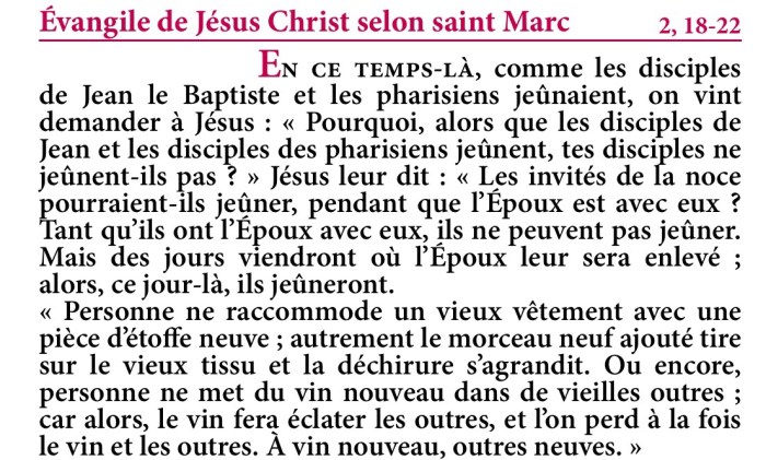 Évangile de Jésus-Christ selon saint Marc 2,18-22.