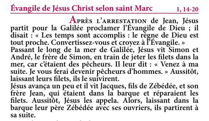 Évangile de Jésus-Christ selon saint Marc 1,14-20.