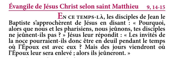 Évangile de Jésus-Christ selon saint Matthieu 9,14-15.
