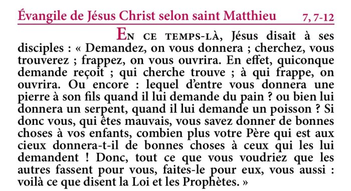 Évangile de Jésus-Christ selon saint Matthieu 7,7-12.