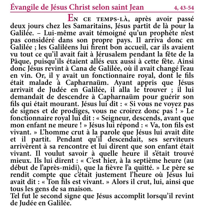 Évangile de Jésus-Christ selon saint Jean 4,43-54.