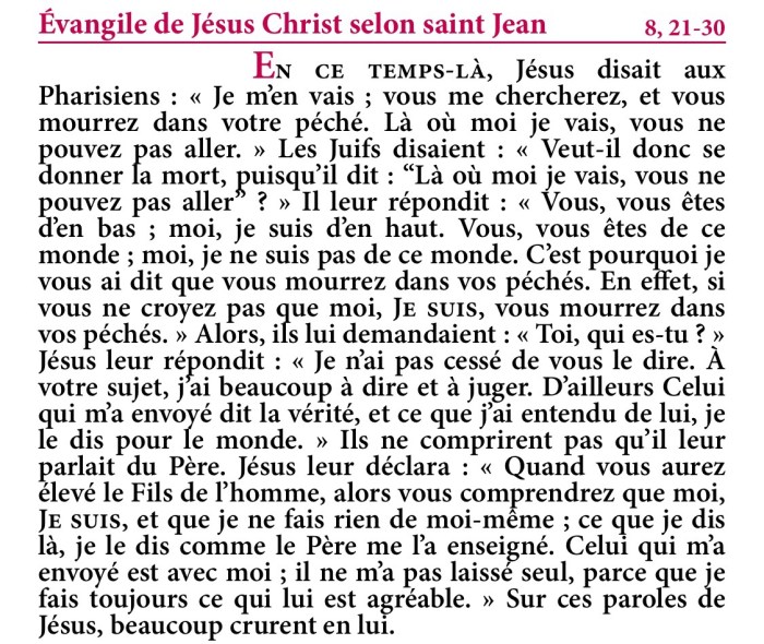 Évangile de Jésus-Christ selon saint Jean 8,21-30.