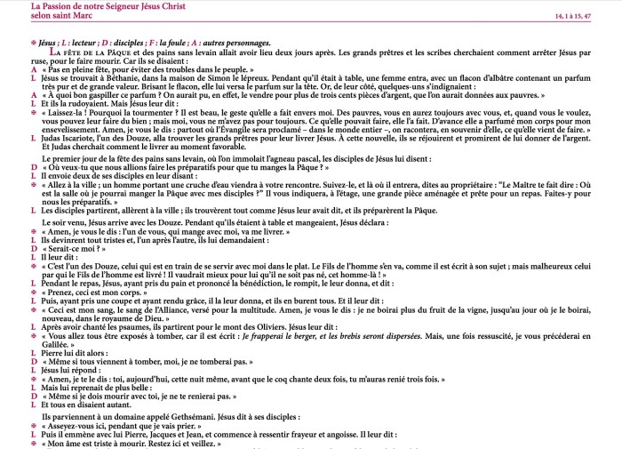 Evangile du Dimanche des Rameaux et de la Passion – Année B – Extrait de la Traduction Liturgique de la Bible – © AELF, Paris