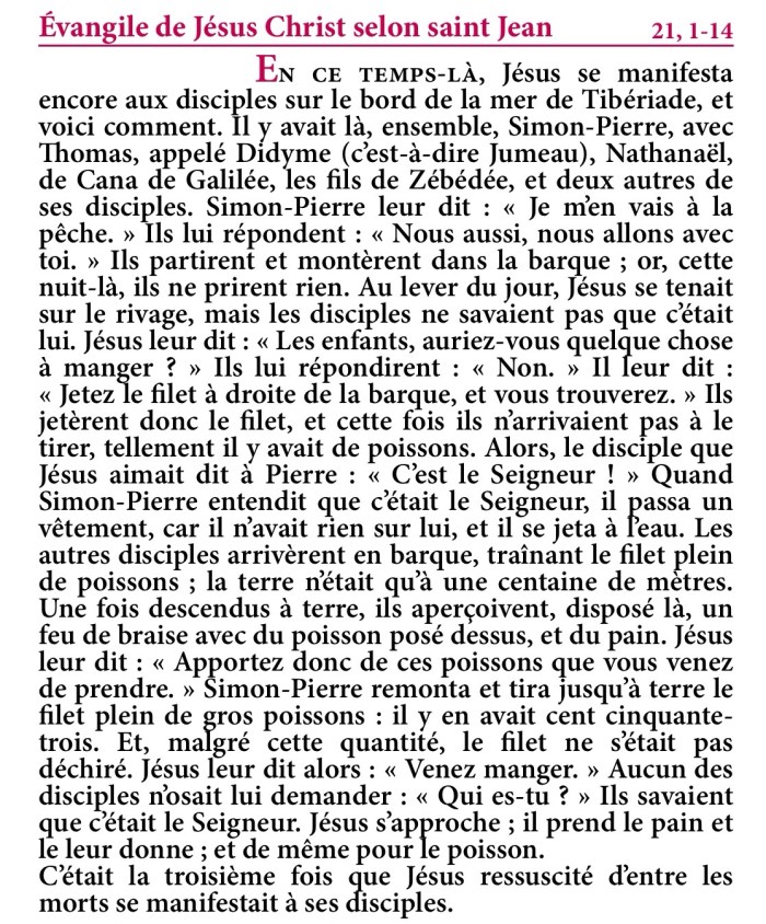 Évangile de Jésus-Christ selon saint Jean 21,1-14.