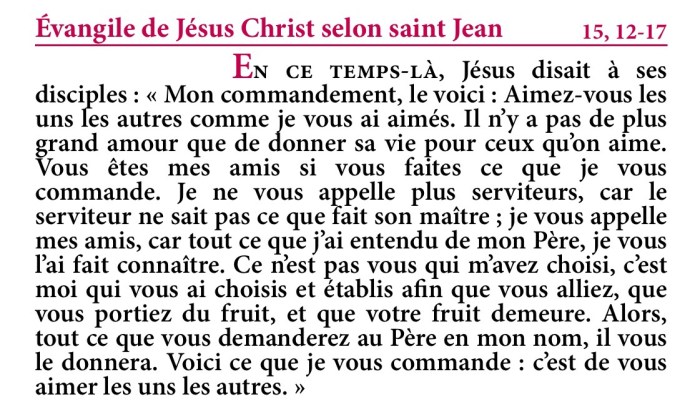 Évangile de Jésus-Christ selon saint Jean 15,12-17.