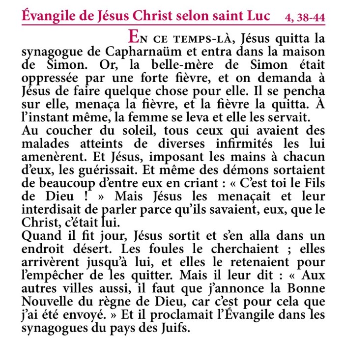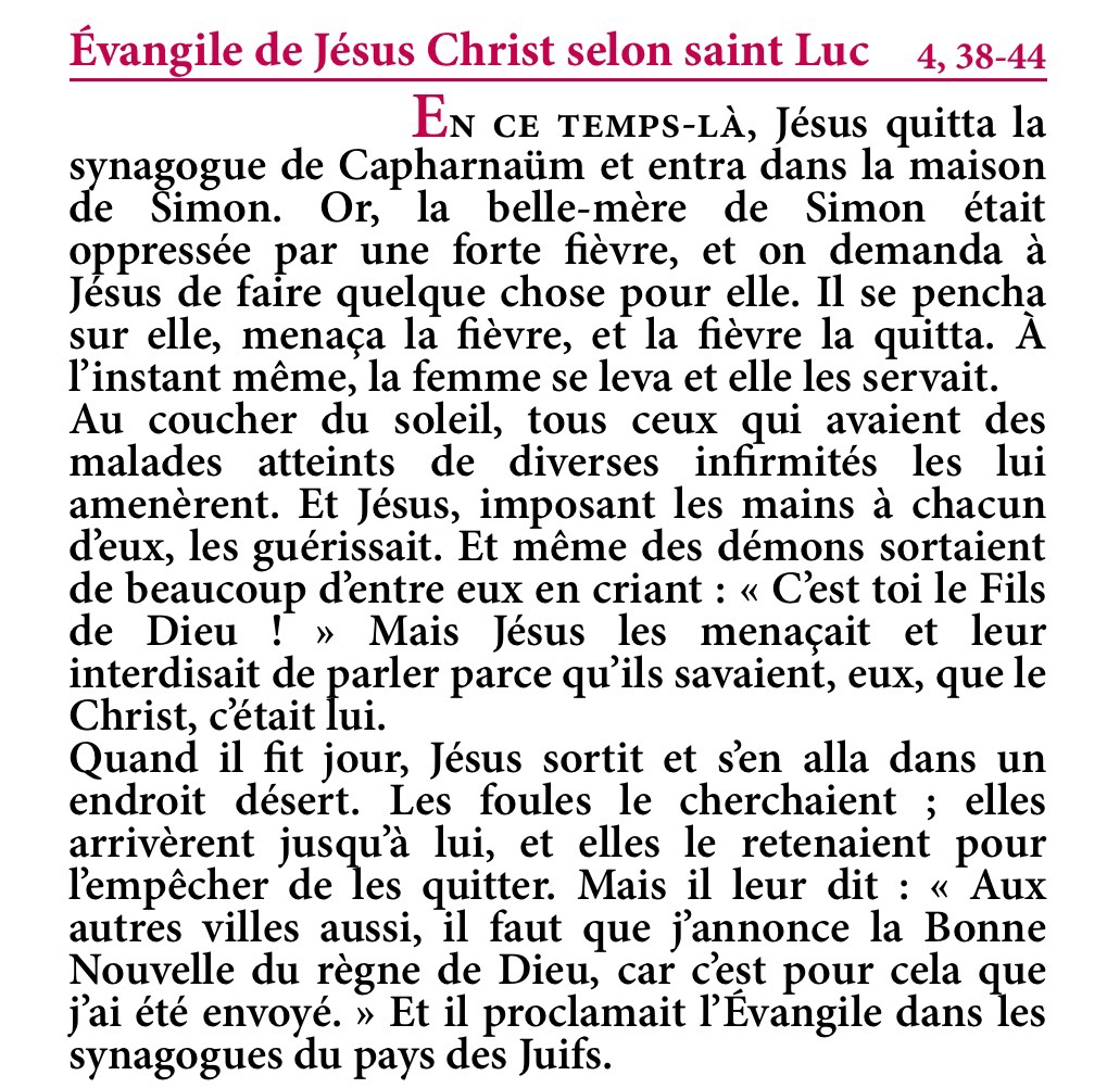 Évangile de Jésus-Christ selon saint Luc 4,38-44.