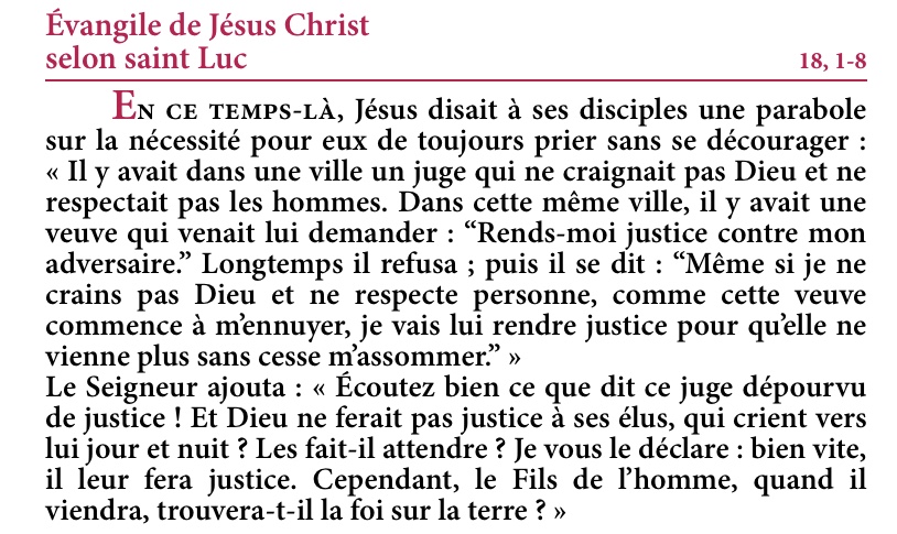 Évangile de Jésus-Christ selon saint Luc 18,1-8.