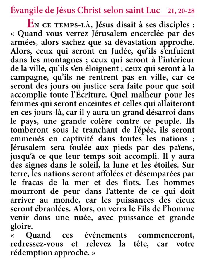 Évangile de Jésus-Christ selon saint Luc 21, 20-28.